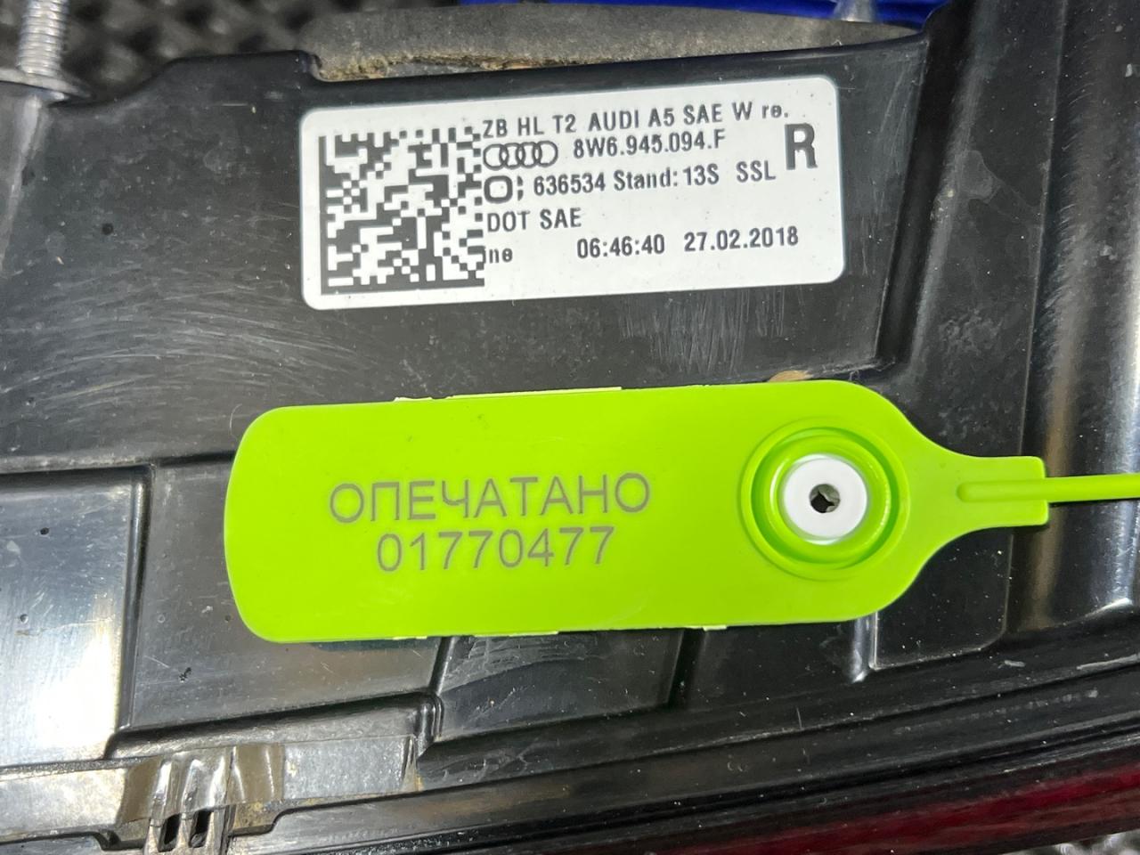 Фонарь крышки багажника правый Audi A5 F5 2018