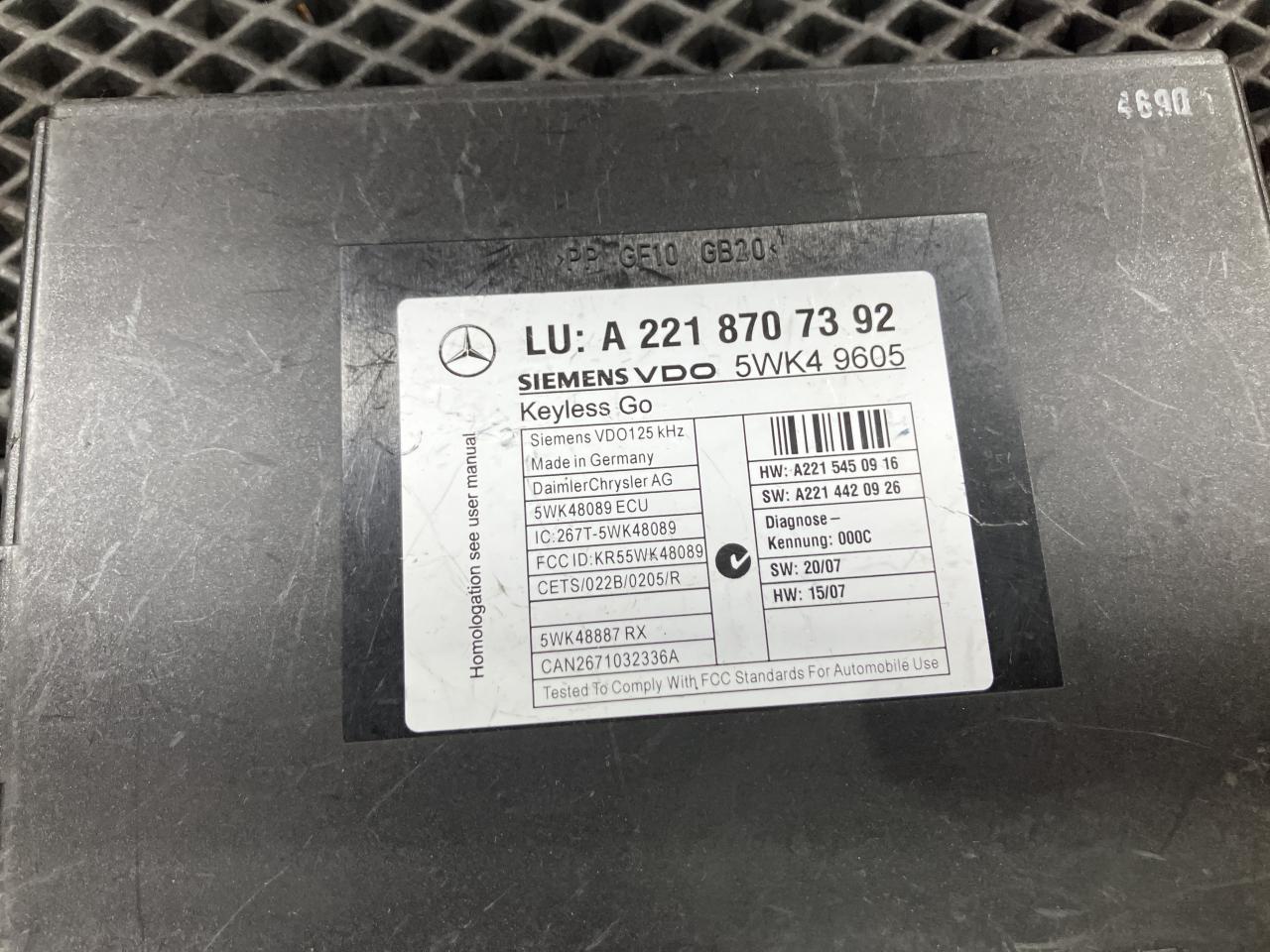 Блок управления бесключевым доступом Mercedes-Benz S-Класс W221 2008